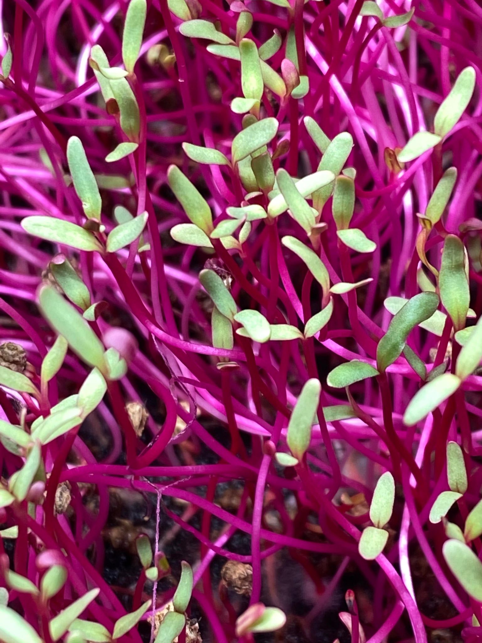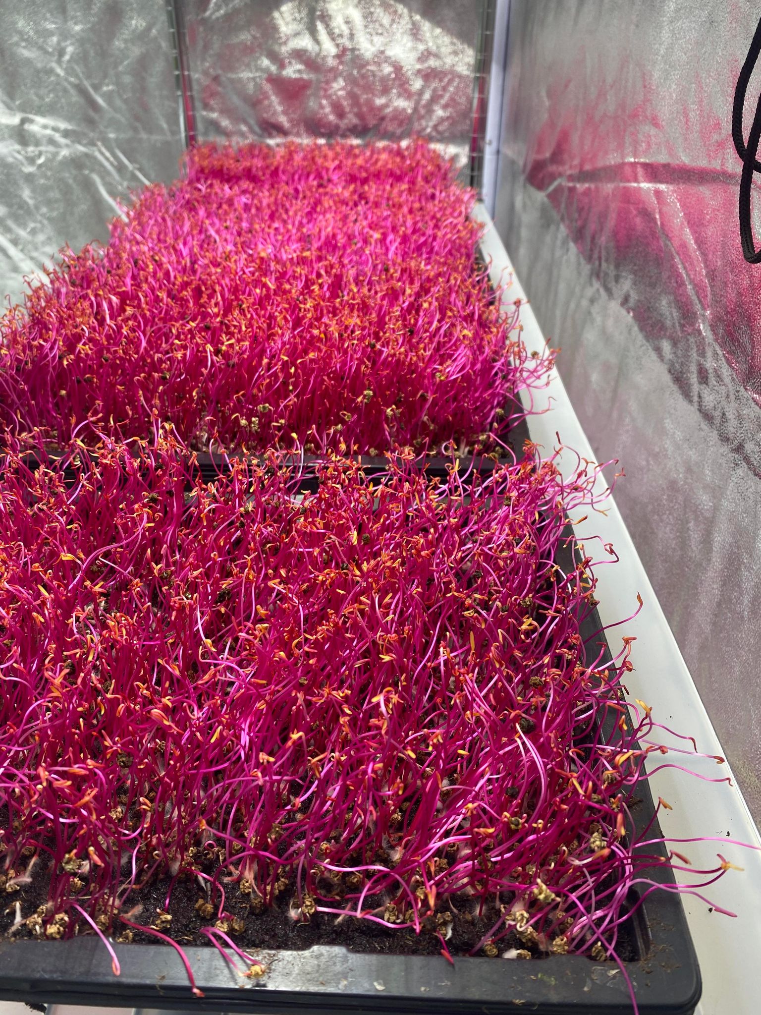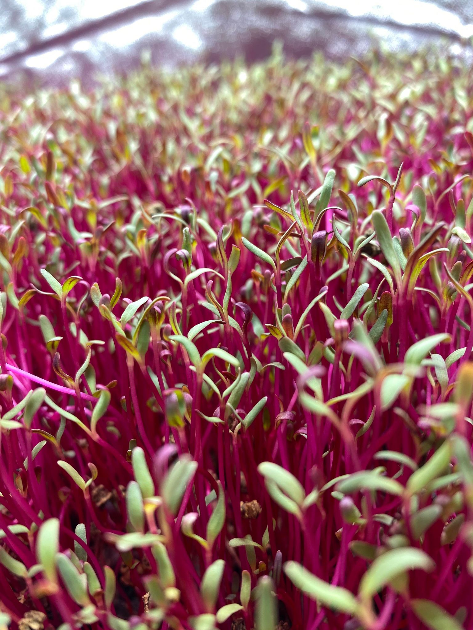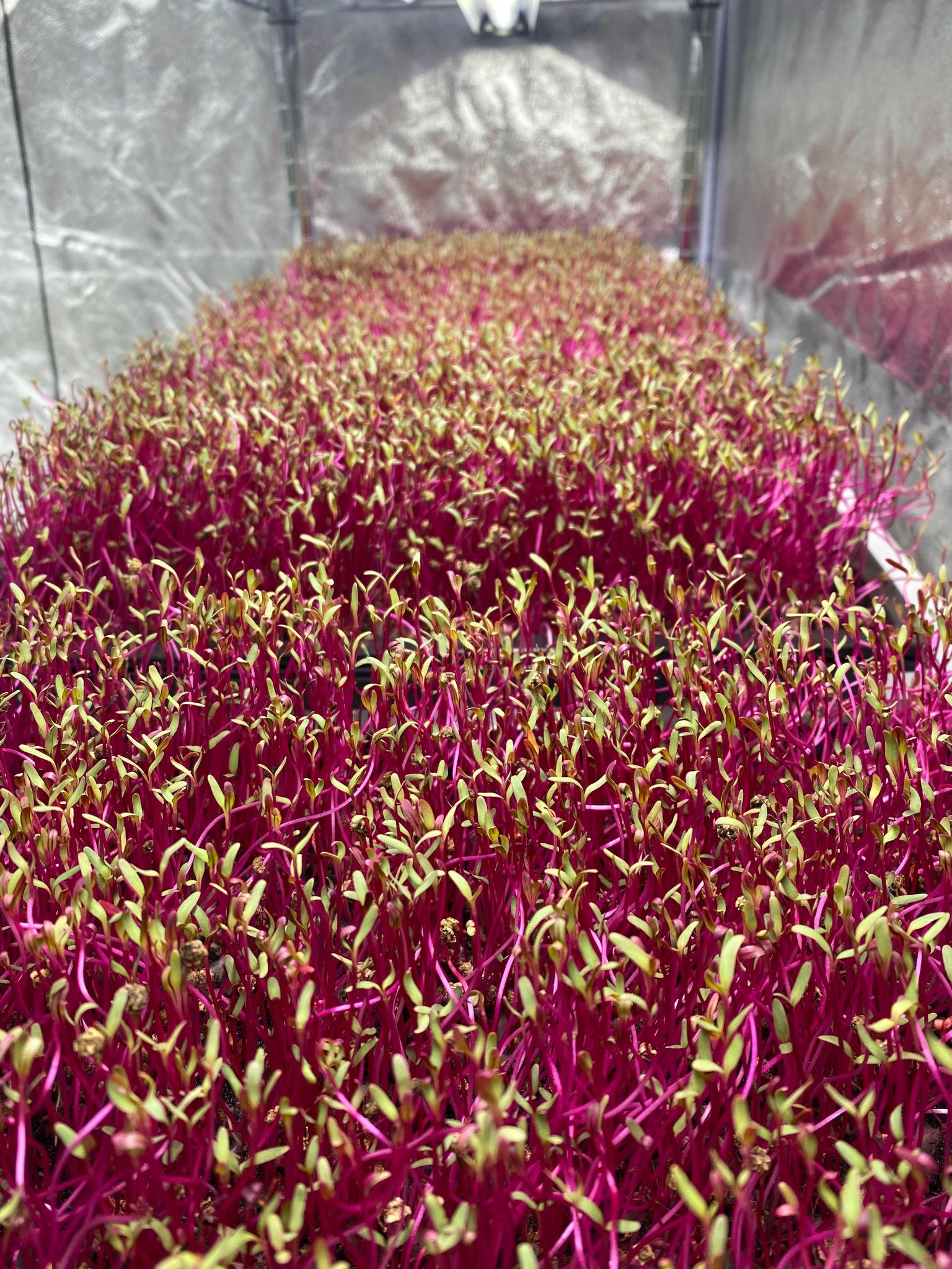 The taste of beet microgreens is slightly sweet and earthy, with a slightly bitter undertone. They are versatile and can be used in a variety of dishes, including salads, sandwiches, smoothies, and as a garnish on top of soups and entrees.